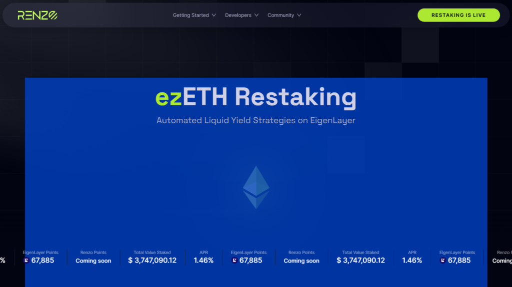 Renzo Protocol là nền tảng Liquid Restaking Token được xây dựng trên EigenLayer, Renzo giúp đơn giản hóa các thao tác cho người dùng có nhu cầu Restaking trên EigenLayer. Khi người dùng thực hiện việc restaking trực tiếp trên EigenLayer thị họ sẽ không nhận về một loại LRT nào để tiếp tục tham gia DeFi. Nhưng khi làm việc này thông qua Renzo thì người dùng sẽ nhận lại được ezETH để tối ưu khả năng sử dụng vốn của mình.