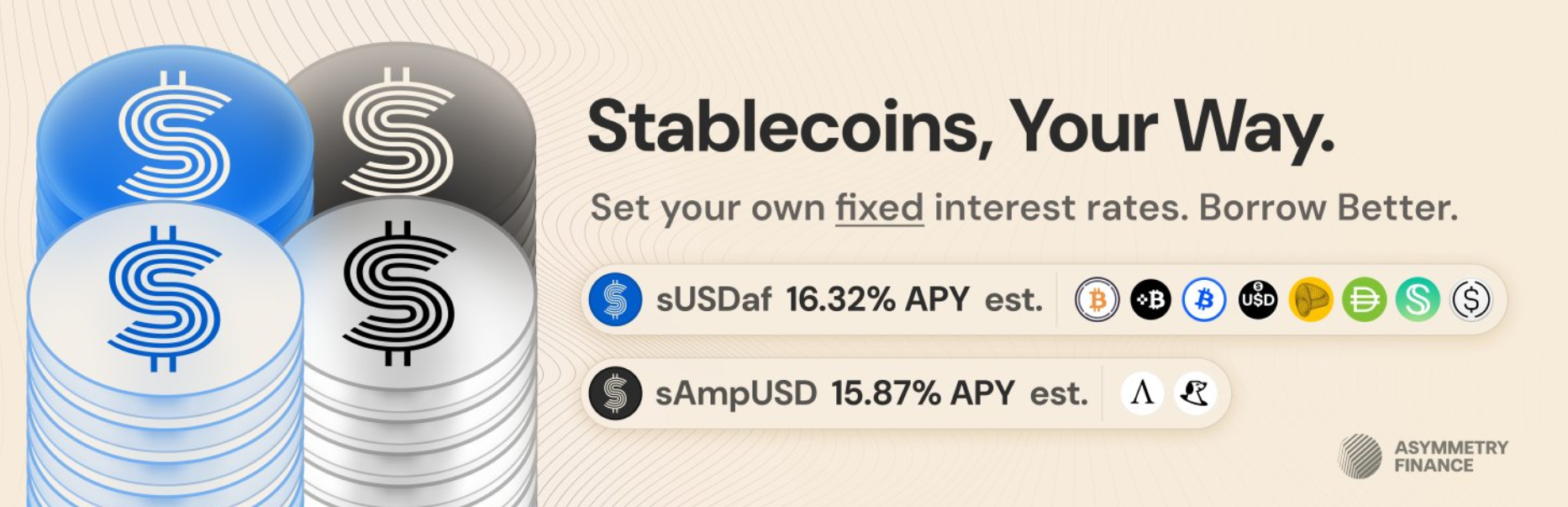Asymmetry Finance là một giao thức DeFi tập trung vào phát triển các sản phẩm Stablecoin và Yield Farming bền vững, có thể mở rộng và vận hành hoàn toàn On-chain. Dự án được xây dựng dựa trên triết lý cốt lõi của Crypto: minh bạch, phi tập trung và sử dụng các Smartcontract không thể thay đổi.
