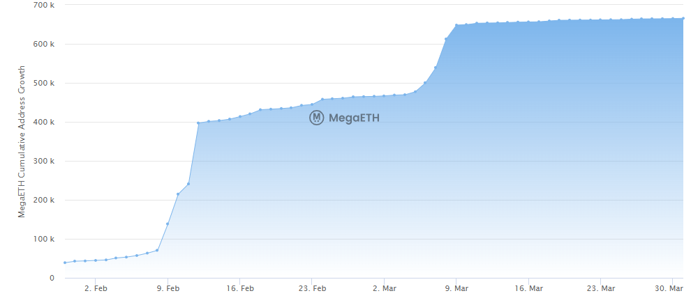 Về số lượng người dùng trên MegaETH cũng có sự tăng trưởng tương đối tốt và hiện đã đạt hơn 650.000 người dùng. Trong đó, số lượng người dùng mới tham gia vào MegaETH tăng trưởng nhanh trong vòng 1 tháng sau khi Mainnet và hiện tại đang duy trì ổn định quanh mức 1.000 - 2.000 người dùng mới tham gia vào hệ sinh thái mỗi ngày
