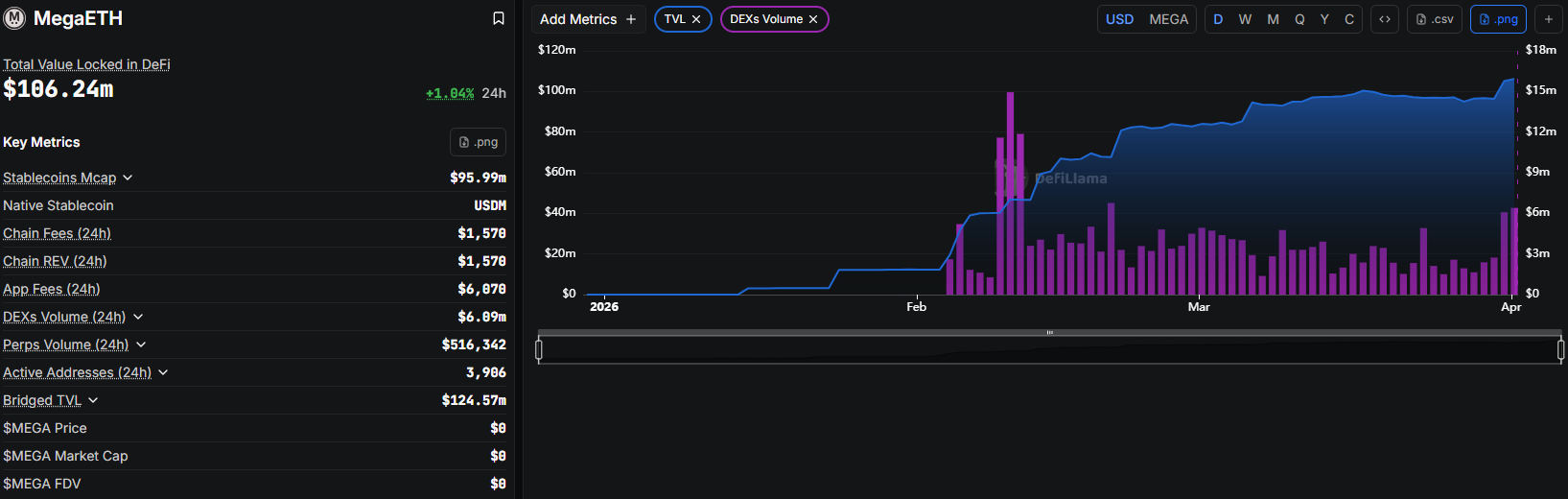 Tiếp theo về TVL trên MegaETH cũng có sự tăng trưởng tương đối tốt kể từ khi Mainnet, hiện đã đạt hơn 100 triệu USD còn khối lượng giao dịch hàng ngày được duy trì ổn định quanh mức 4 - 6 triệu USD.