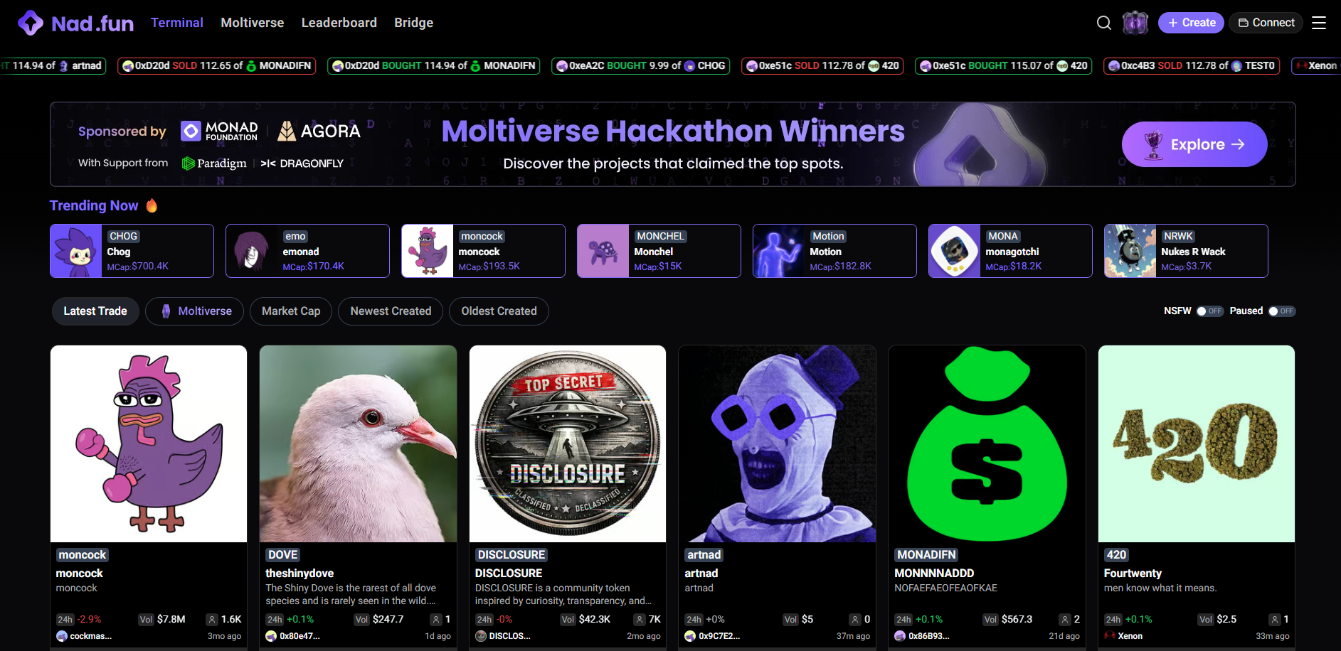 Nad.fun - Launchpad Memecoin Fair Launch trên Monad