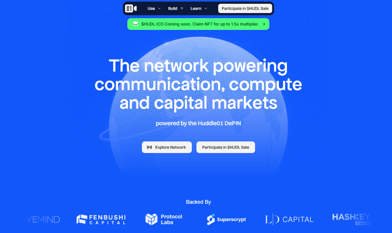 Huddle01 là mạng lưới cơ sở hạ tầng vật lý phi tập trung (DePIN) chuyên cung cấp giao tiếp thời gian thực phi tập trung (dRTC). Dự án xây dựng nền tảng kết nối âm thanh, video và dữ liệu thời gian thực với hiệu suất cao, chi phí thấp và khả năng chống kiểm duyệt. Mạng lưới hoạt động dựa trên các Node do cộng đồng vận hành, cung cấp băng thông dư thừa để định tuyến dữ liệu, thay thế mô hình máy chủ tập trung truyền thống. Các sản phẩm chính bao gồm ứng dụng họp video Huddle01 Meet, dịch vụ Cloud Huddle01 Cloud, nền tảng không gian và Livestream House, bộ công cụ phát triển SDK, cùng Launchpad HuddlePad trên Arbitrum.