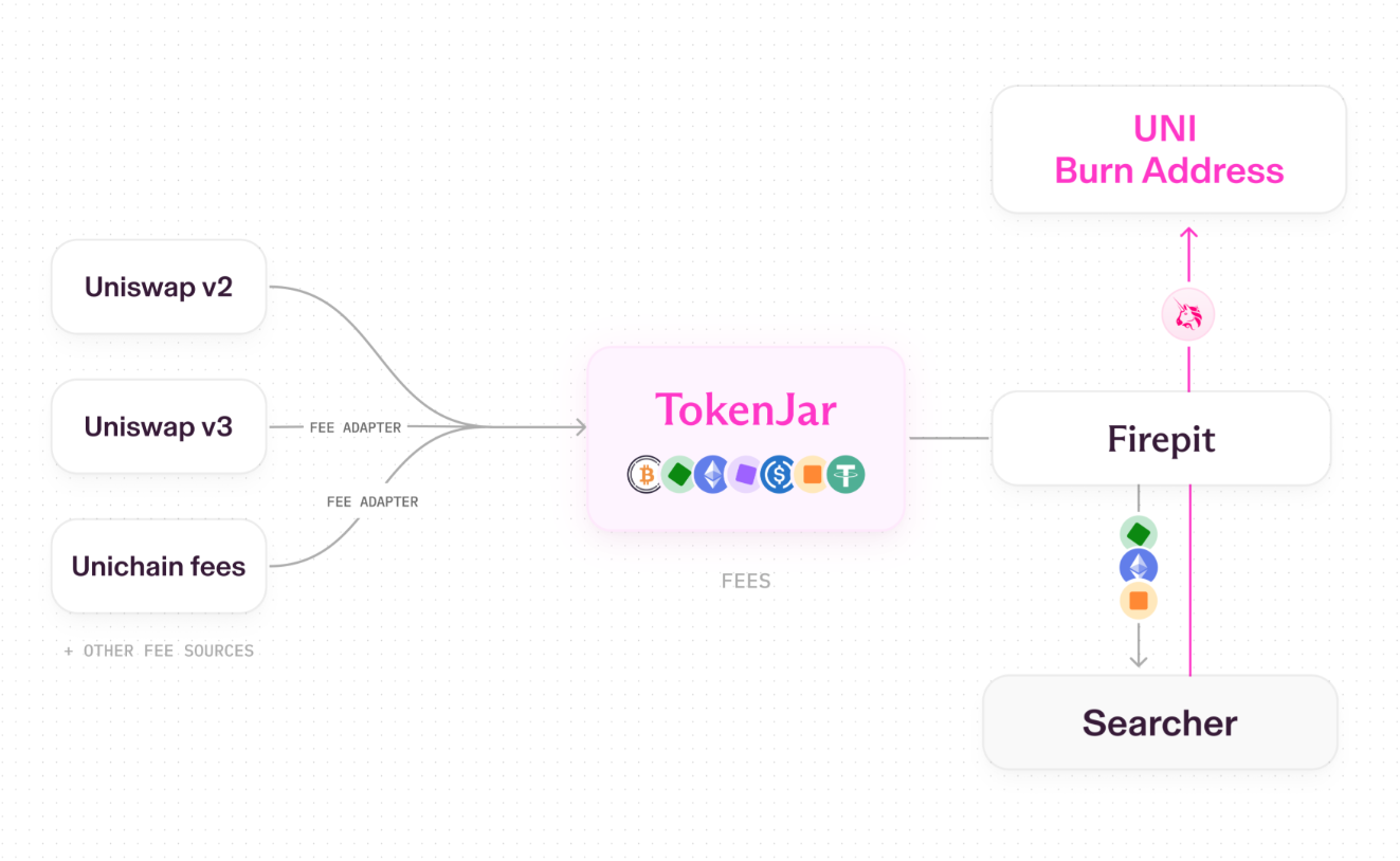 Trong mô hình doanh thu mới của Uniswap, TokenJar và Firepit đóng vai trò là trung tâm của cơ chế tích lũy giá trị. Hai Smart Contract này được thiết kế để tự động thu thập phần phí giao thức và chuyển đổi chúng thành UNI trước khi tiến hành Burn vĩnh viễn. Nhờ vậy, mỗi giao dịch thực hiện trên Uniswap không chỉ mang lại phí cho hệ thống mà còn trực tiếp biến khối lượng giao dịch thành dòng tiền thực cho người nắm giữ UNI. Đây là bước tiến quan trọng giúp kết nối hoạt động của giao thức với giá trị nội tại của token, tạo ra vòng tuần hoàn giao dịch sinh doanh thu – doanh thu đốt token – token tăng giá trị.