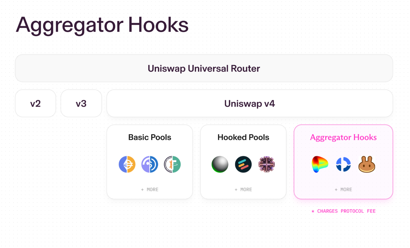 Aggregator Hooks ra mắt trong Uniswap v4, mở rộng đáng kể phạm vi doanh thu của giao thức. Nếu như trước đây Uniswap chỉ thu phí trên khối lượng giao dịch nội bộ thì với Aggregator Hooks, giao thức có thể thu phí cả trên các nguồn thanh khoản bên ngoài như các Dexx khác, AMM độc lập hay Pool chuyên biệt ngoài hệ sinh thái. Cơ chế này biến Uniswap từ một sàn giao dịch đơn lẻ thành một lớp trung gian thanh khoản của toàn bộ thị trường Onchain nơi mọi dòng thanh khoản đều đi qua và đóng góp doanh thu về cho giao thức. Đây là nền tảng quan trọng giúp Uniswap trở thành bộ hạ tầng cốt lõi cho các giao dịch phi tập trung trong kỷ nguyên Web3.