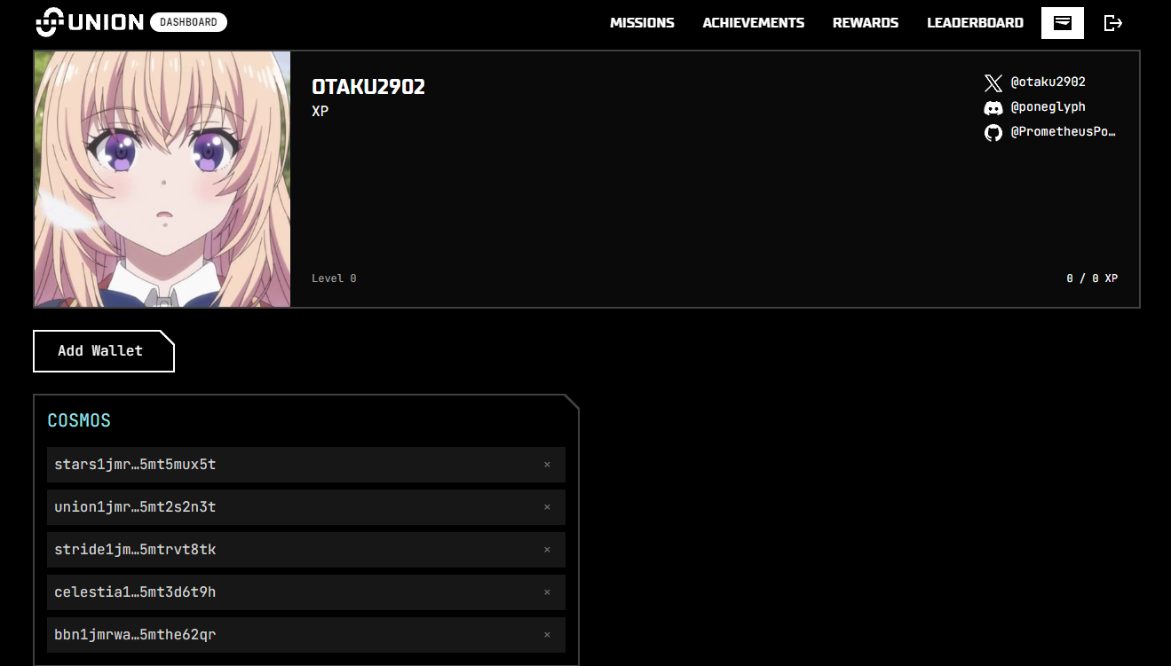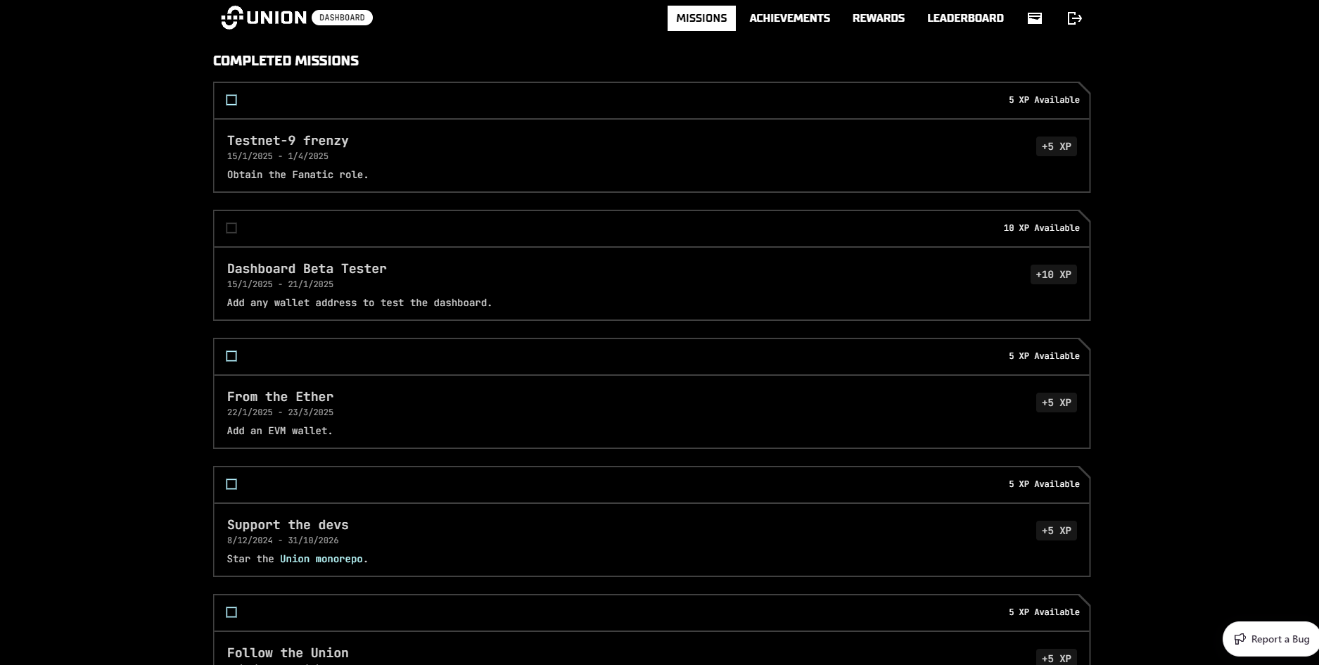 Dashboard Union đã được cập nhật cho testnet 9, và số giao dịch yêu cầu để nhận XP đã được thêm.