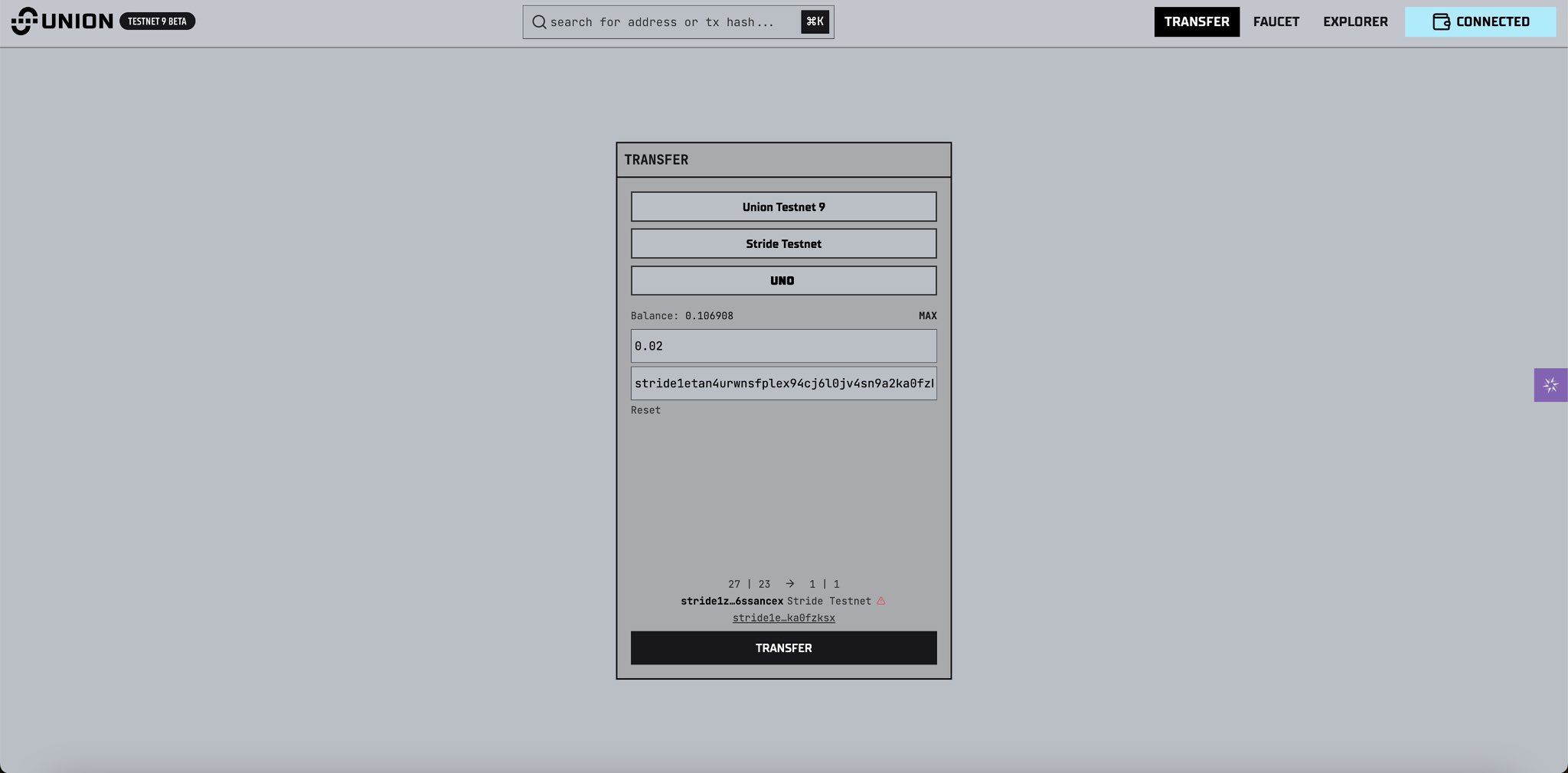 - Truy cập trang ứng dụng: https://app.union.build/transfer