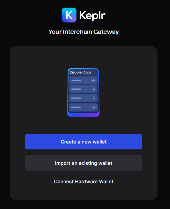 - Tạo một ví mới hoặc nhập seed của mọi người trên Keplr Wallet.