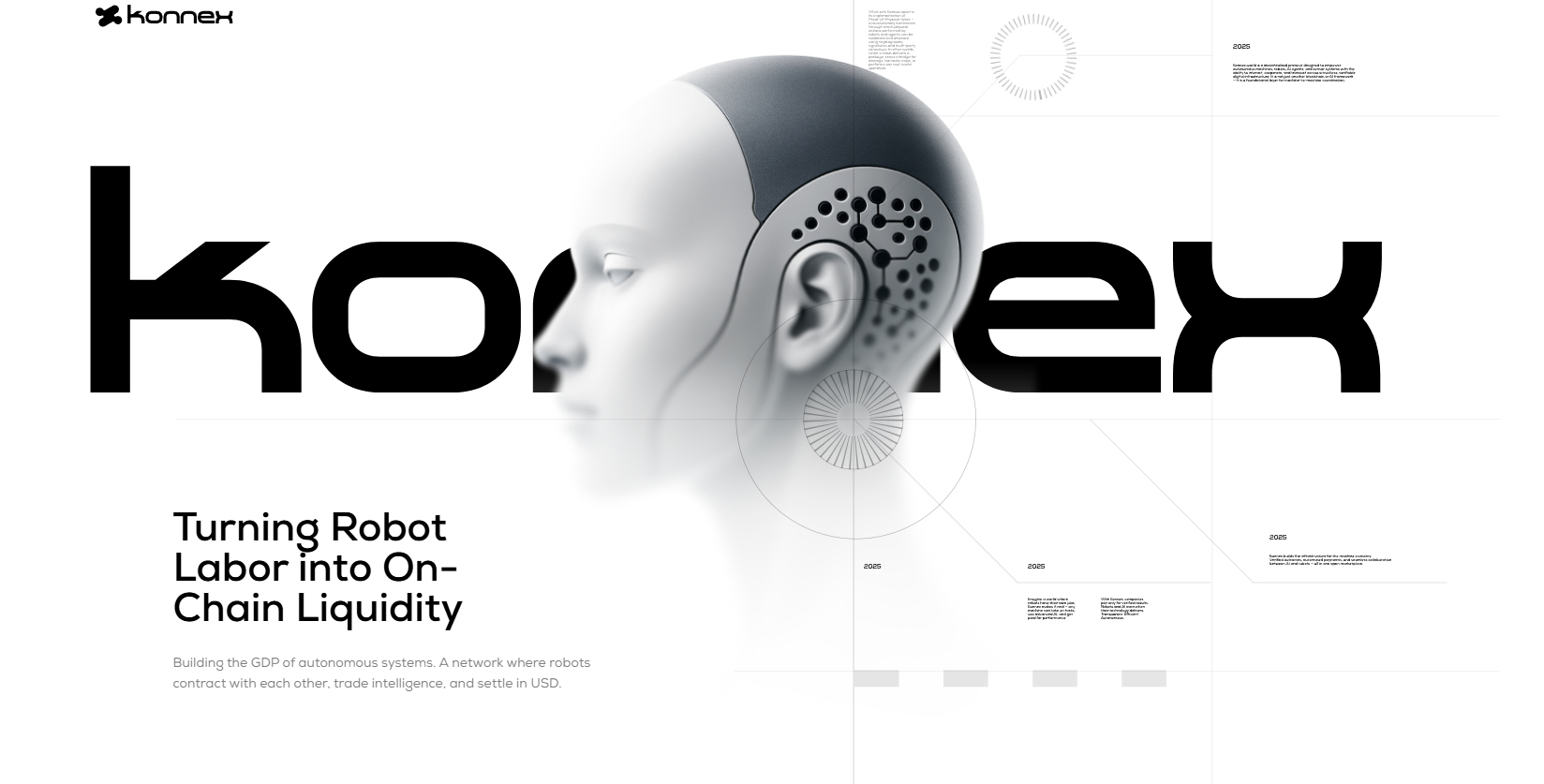 Konnex là dự án trong lĩnh vực Crypto tập trung vào việc kết nối các hệ thống AI Agent, đặc biệt là Robot, để biến lao động vật lý thành thanh khoản On-chain. Dự án nhằm xây dựng GDP cho các hệ thống Agent bằng cách tạo mạng lưới nơi Robot có thể hợp đồng với nhau, giao dịch trí tuệ và thanh toán bằng USD.