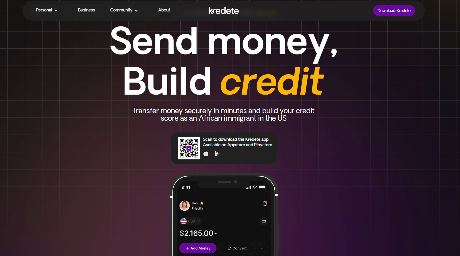 Kredete là một nền tảng công nghệ tài chính dành cho người nhập cư châu Phi tại Mỹ, tập trung vào dịch vụ chuyển tiền và hỗ trợ xây dựng điểm tín dụng. Nền tảng này cung cấp các dịch vụ như ngân hàng di động, chuyển tiền quốc tế, theo dõi điểm tín dụng và giao dịch Tiền Điện Tử, nhằm giúp người dùng quản lý tài chính và cải thiện điểm tín dụng của mình.