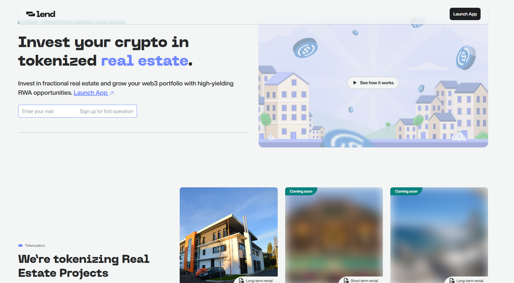 Lend là một nền tảng chuyên Token hóa các dự án bất động sản thực tế để nhà đầu tư Crypto có thể tham gia trực tiếp. Dự án tập trung vào việc cung cấp cơ hội đầu tư vào tài sản thực tế (RWA) với lợi suất ổn định, chủ yếu từ các dự án thương mại như trung tâm dữ liệu hoặc bất động sản cho thuê ngắn hạn. Nhà đầu tư có thể phân bổ vốn vào các khoản vay có tài sản đảm bảo là bất động sản, nhận lãi định kỳ cho đến khi tài sản được bán.