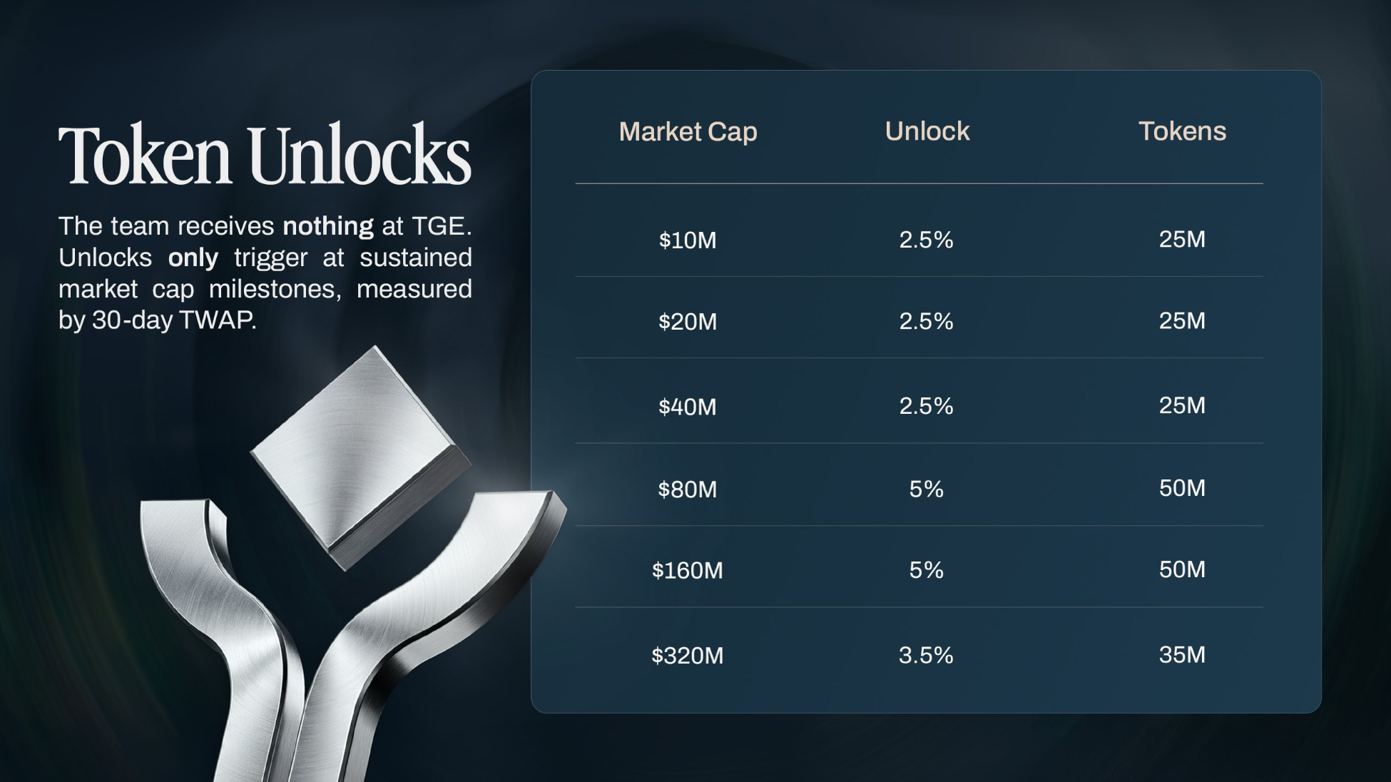 Team Vesting: Token Team bị khóa theo Milestone, lần Unlock đầu tiên chỉ diễn ra khi FDV của FAIR đạt 8x so với ICO.