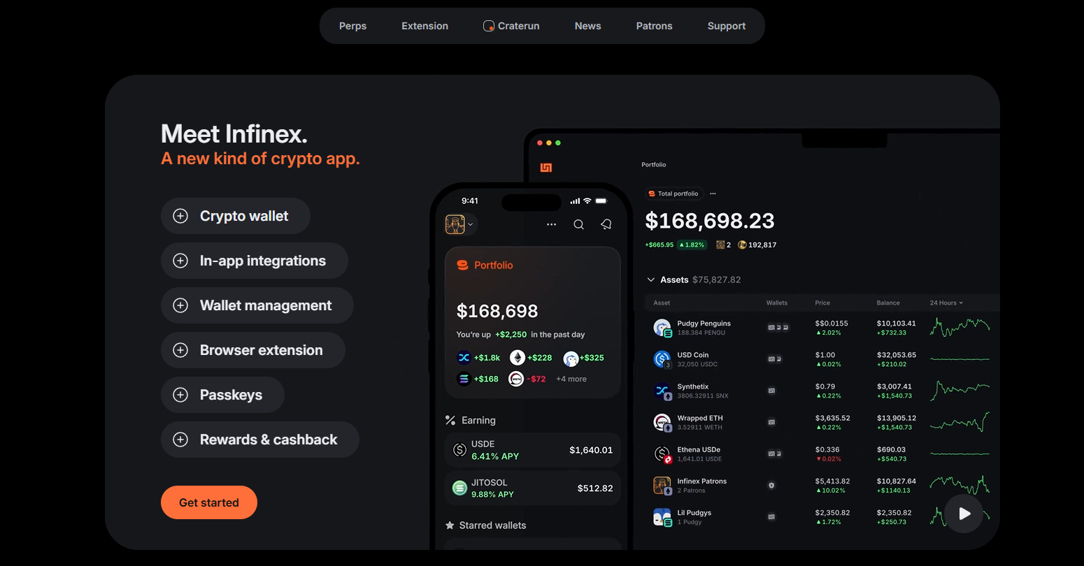 Infinex là nền tảng ví Cross-Chain phi tập trung được thiết kế để hợp nhất toàn bộ trải nghiệm Onchain trong một ứng dụng duy nhất. Thay vì phải dùng nhiều ví, tự quản lý Seed Phrase, tự thanh toán phí Gas hay thao tác Bridging thủ công, người dùng có thể tiếp cận mọi hoạt động Onchain chỉ với Infinex. Nền tảng hiện hỗ trợ các hệ sinh thái lớn như Ethereum, Arbitrum, Base và Solana, đồng thời sử dụng Passkey để bảo mật và phục hồi tài khoản dễ dàng hơn, loại bỏ hoàn toàn các rủi ro vốn có của mô hình quản lý Seed Phrase truyền thống.