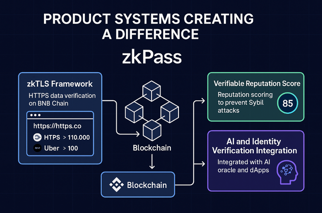 Đây là sản phẩm trọng tâm của zkPass. zkTLS Framework được triển khai trực tiếp trên BNB Chain, cho phép các ứng dụng Blockchain xác minh dữ liệu HTTPS mà không cần tiết lộ nội dung gốc. Cụ thể, khi người dùng thực hiện xác minh (ví dụ: tài khoản Binance có số dư > 10.000 USD hoặc đã hoàn thành 100 chuyến Uber), hệ thống zkTLS sẽ tạo một zero-knowledge proof chứng minh điều đó đúng mà không cần gửi dữ liệu thật.