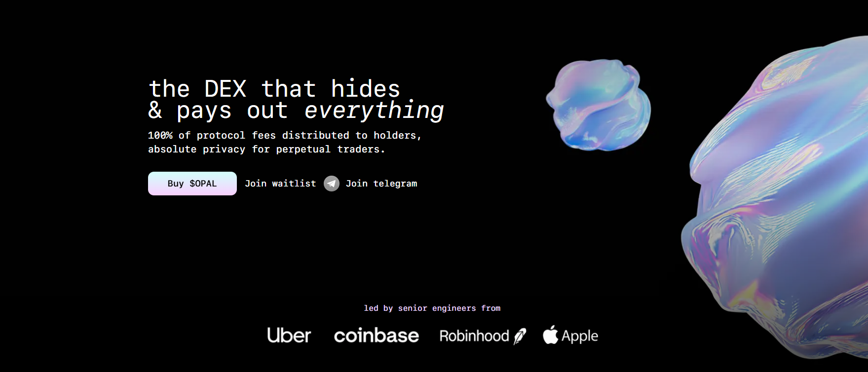 Opal Exchange là một sàn giao dịch phái sinh phi tập trung chú trọng vào quyền riêng tư, cho phép người dùng thực hiện các lệnh giao dịch ẩn danh để tránh tình trạng bị thao túng bởi bot hoặc các bên tham gia khác trong hệ sinh thái. Dự án này còn tạo ra cơ chế phân bổ toàn bộ phí giao thức dưới dạng ETH cho người nắm giữ Token, qua đó thiết lập mô hình lợi ích bền vững cho cộng đồng. Vậy chi tiết dự án này là gì và có điều gì đặc biệt, hãy cùng Hak Research tìm hiểu chi tiết trong bài viết này nhé