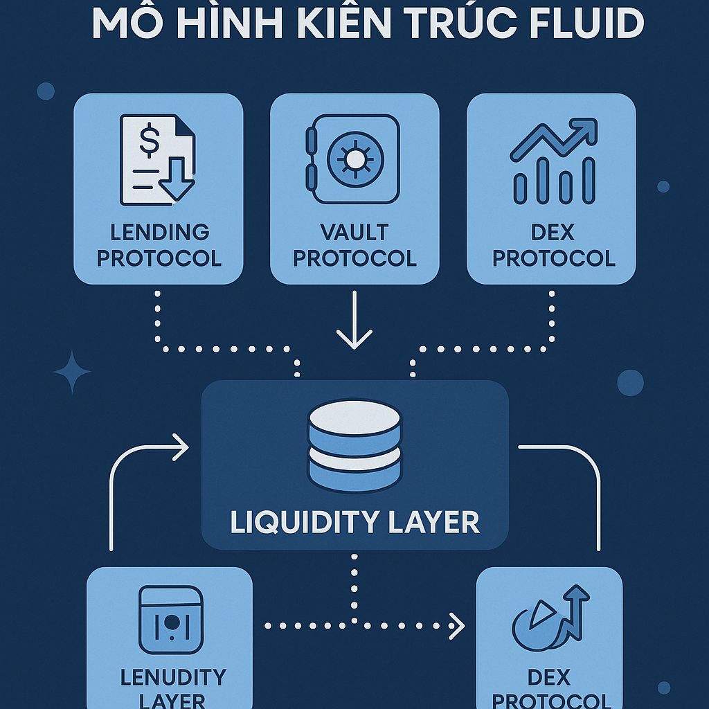 Một bước ngoặt xảy ra vào tháng 02/2024 khi Fluid chính thức chuyển sang mô hình Liquidity Layer. Sự thay đổi này nhằm giải quyết một vấn đề rất lớn của DeFi: thanh khoản bị chia nhỏ ở quá nhiều giao thức khác nhau dẫn đến hiệu quả sử dụng vốn thấp và chi phí giao dịch tăng. Khi gom toàn bộ thanh khoản vào một lớp chung, Fluid giúp tối ưu hóa tài sản người dùng, giảm chi phí đồng thời mang lại trải nghiệm liền mạch hơn và nâng cao hiệu suất hoạt động cho toàn bộ hệ sinh thái.