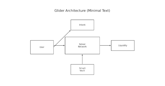với Glider, cách tiếp cận hoàn toàn khác. Thay vì hành động theo từng bước cụ thể, người dùng chỉ cần mô tả kết quả họ mong muốn chẳng hạn như “tôi muốn có B nhiều nhất với lượng A hiện có”. Phần còn lại được hệ thống xử lý tự động thông qua việc tạo ra một Intent. Intent này được Solver Network tiếp nhận và tối ưu hóa quá trình thực thi. Điều này giúp loại bỏ yêu cầu kỹ thuật từ phía người dùng đồng thời đảm bảo họ luôn nhận được kết quả tốt nhất từ thị trường thanh khoản.