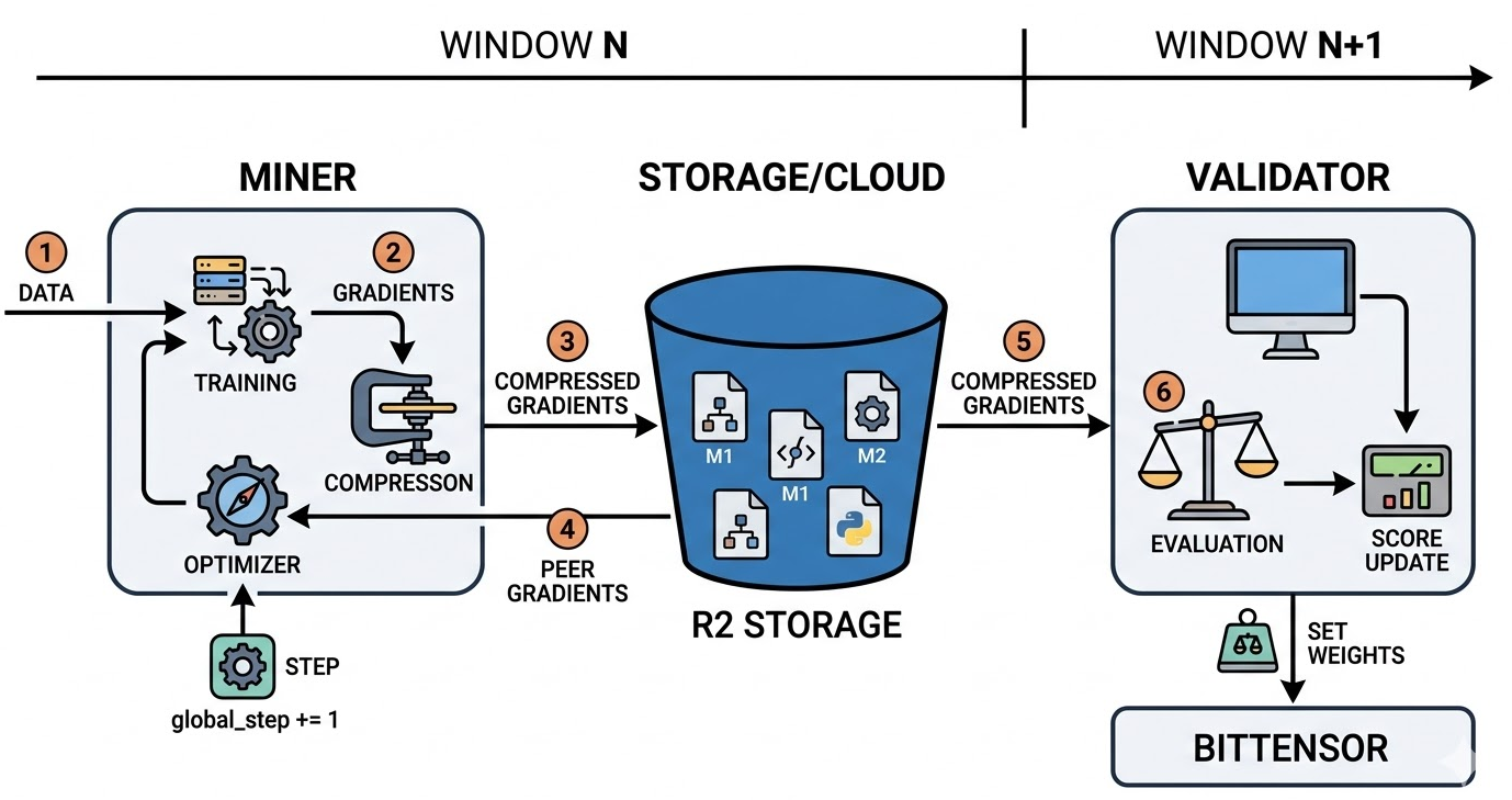 Vì các File mô hình và dữ liệu Gradient rất nặng, Templar không lưu trữ trực tiếp trên Blockchain mà dùng Cloundflare R2 để lưu trữ giúp việc trao đổi thông tin diễn ra với tốc độ cao hơn