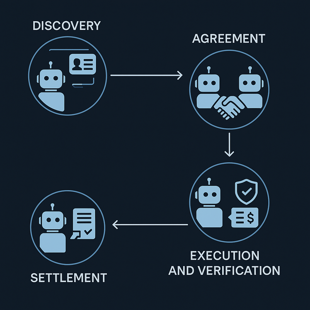Chu trình khép kín Discovery → Agreement → Verification → Payment này mô phỏng lại chính xác cách con người làm việc với nhau trong các hoạt động kinh tế từ tìm đối tác, kiểm tra năng lực, xác nhận công việc đến thanh toán. Điểm khác biệt quan trọng là tất cả đều được tự động hóa hoàn toàn giữa các thực thể máy móc, giảm thiểu rủi ro gian lận và loại bỏ nhu cầu về trung gian.