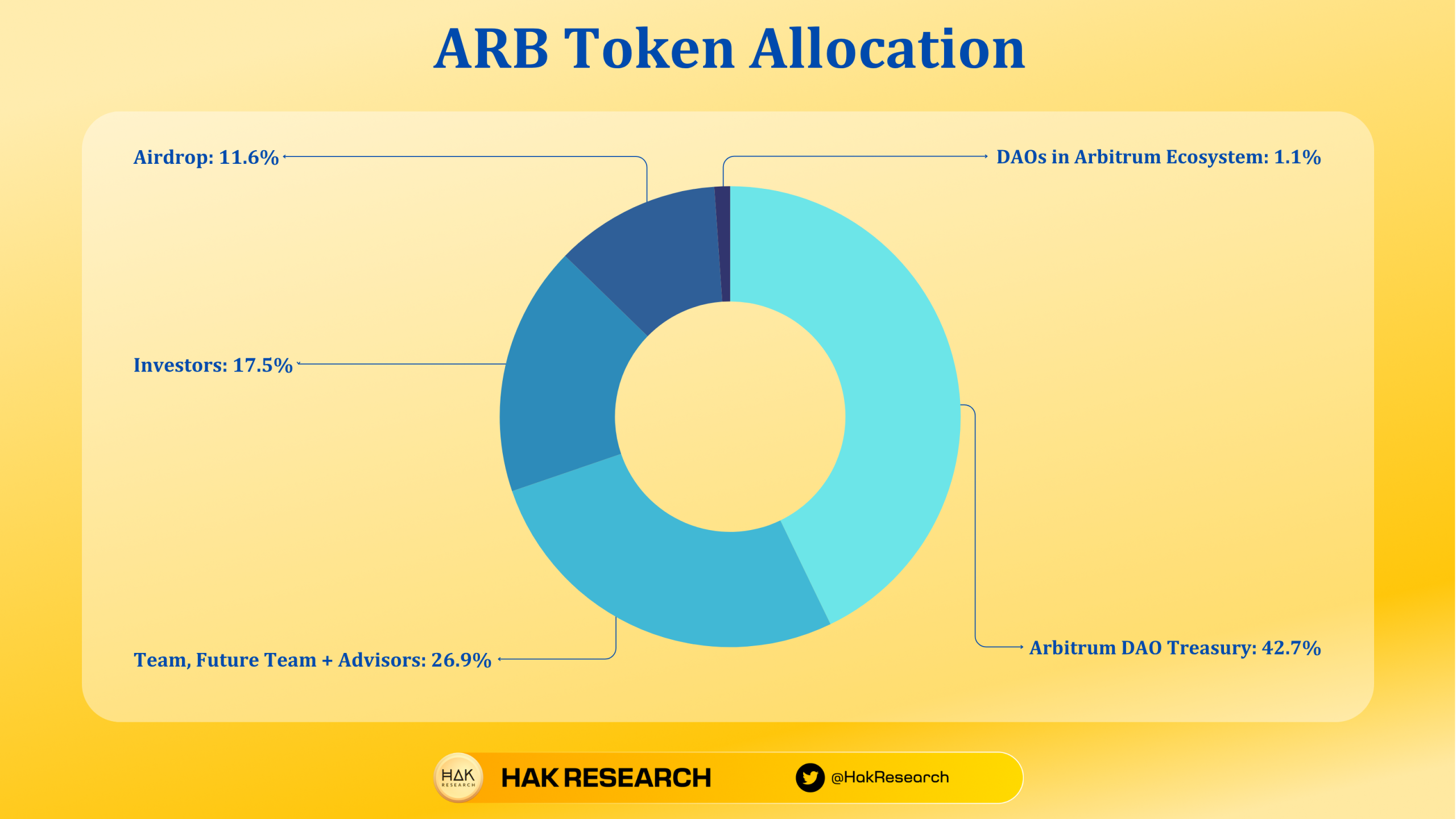 - Arbitrum DAO Treasury (42.78%): Phụ thuộc vào việc voting của DAO trong cách sử dụng