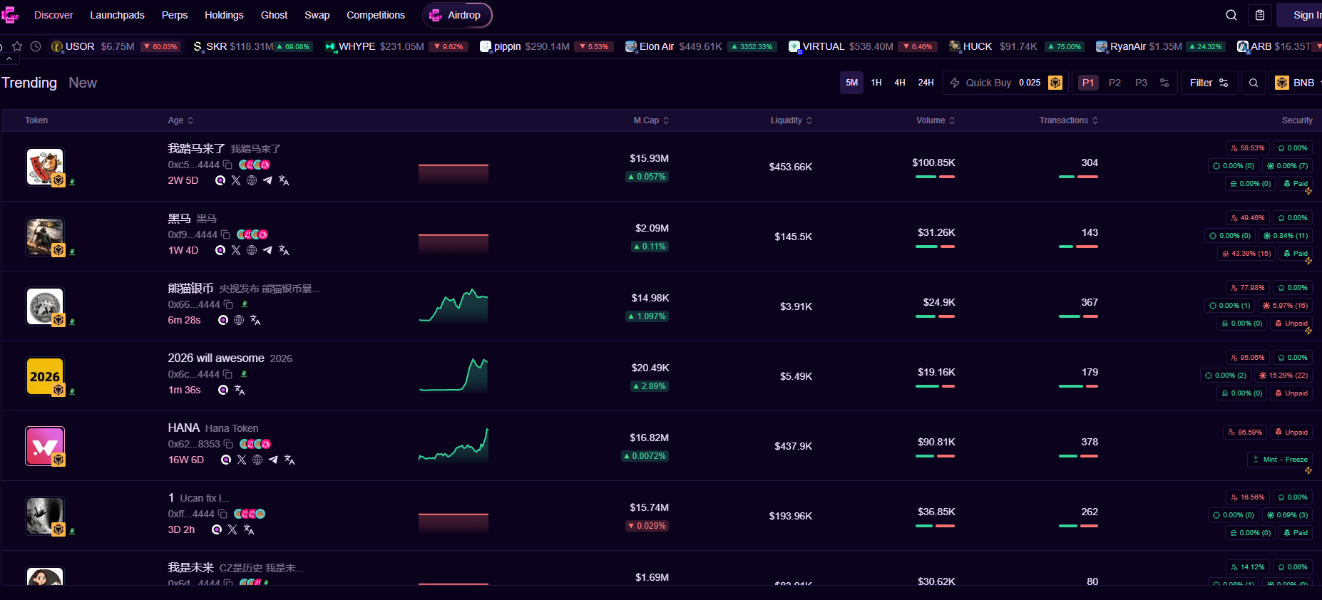 - Insights thời gian thực tích hợp: Dashboard cung cấp Radar Memecoin, bản đồ thanh khoản, Funding Rate và dữ liệu Holder trực tiếp. Trader có thể phát hiện cơ hội sớm và theo dõi Pre-launch Token mà không rời Terminal.