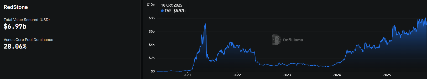 Với việc liên tục tập trung vào các xu hướng mới, đặc biệt là ICM đã mang lại cho RedStone tốc độ tăng trưởng vượt trôi so với các đối thủ cạnh tranh như Chainlink hay Pyth vốn chủ yếu phục vụ các mảng tài sản truyền thống hoặc giao dịch tần suất cao. Trong năm 2024, TVS của RedStone đã tăng trưởng hơn 6000% từ 110 triệu USD đầu năm lên tới gần 7 tỉ USD ở thời điểm hiện tại - tốc độ tăng trưởng gần như chưa từng có trong ngành Oracle. Con số này không chỉ phản ánh quy mô mở rộng nhanh chóng của mạng lưới dữ liệu RedStone mà còn cho thấy dòng vốn và niềm tin từ các giao thức DeFi, Restaking và RWA đang chuyển hướng sang các Oracle có khả năng phục vụ linh hoạt và chuyên biệt.