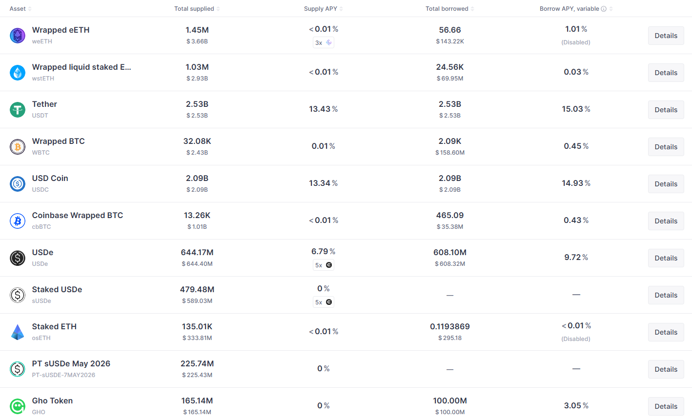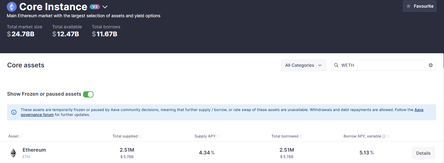 Đối với Lido, họ có sản phẩm EarnETH có mức độ tiếp xúc trực tiếp với rsETH thông qua một vị thế rsETH/ETH được đòn bẩy trên Aave, chiếm khoảng 9% Treasury (21.6 triệu USD). Khi thị trường đang hoảng loạn như hiện nay, lãi suất vay ETH trên Aave đang tăng cao do ai cũng muốn rút ETH khiến chi phí duy trì vị thế đòn bẩy của Lido gặp khó khăn. Vì vậy đội ngũ quản lí đang tìm cách đóng bớt các vị thế đòn bẩy khác để giải phóng thanh khoản và giảm áp lực lãi suất, tránh Treasury bị thâm hụt thêm do chi phí vay mượn
