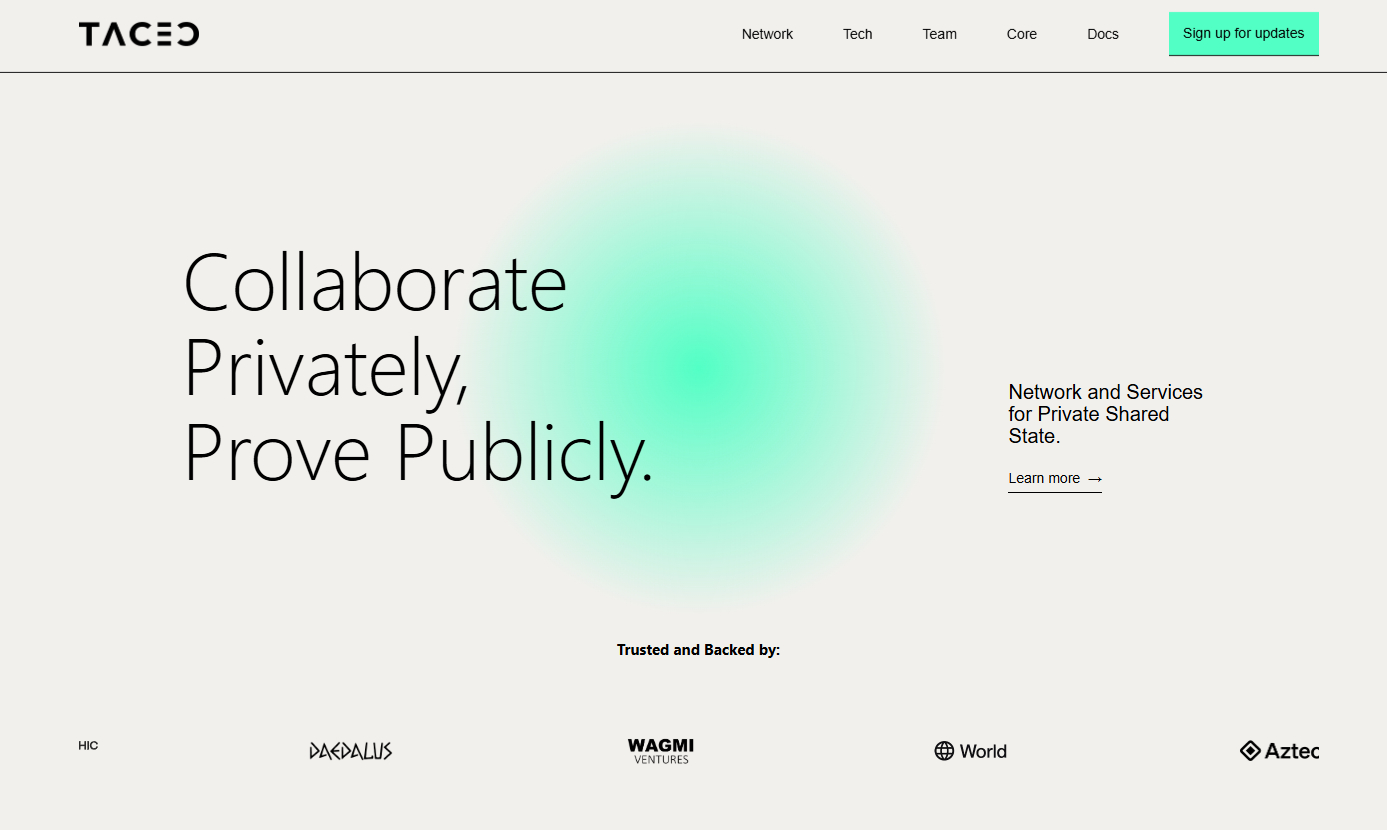 - Dịch vụ TACEO:Proof: Mạng lưới chứng minh hợp tác để ủy thác tạo Proof ZK/coSNARK nhanh chóng và riêng tư, đã triển khai Production sau Beta với hơn 1 triệu Proof được tạo, tập trung vào tốc độ cao và bảo mật dựa trên MPC.