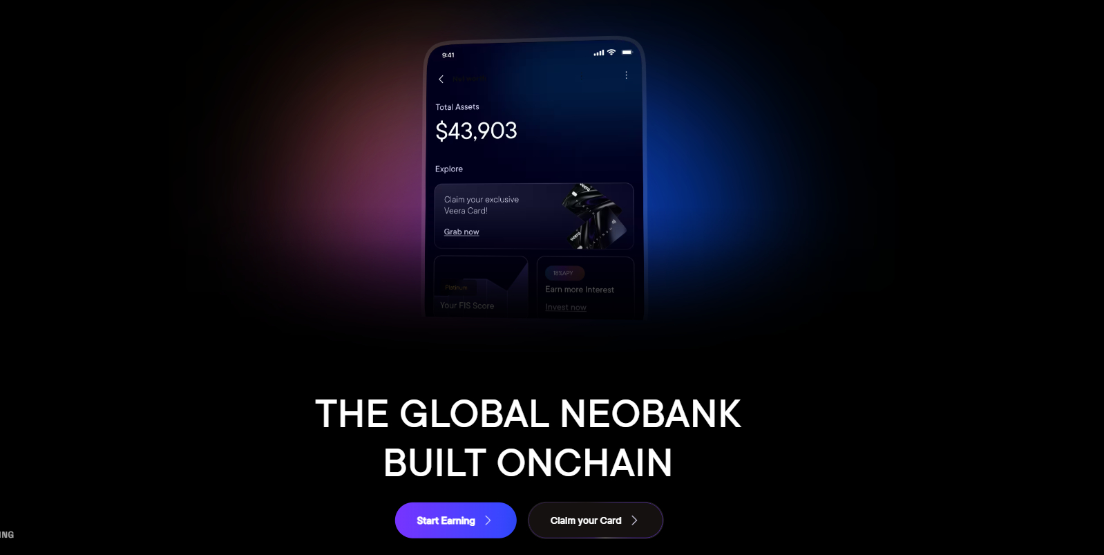 Veera là một Neobank toàn cầu được xây dựng hoàn toàn trên Blockchain với mô hình Non-custodial. Dự án cung cấp ví tự quản lý cho phép người dùng kiếm lợi nhuận, chi tiêu, đầu tư và vay mượn mà không phụ thuộc vào trung gian truyền thống.