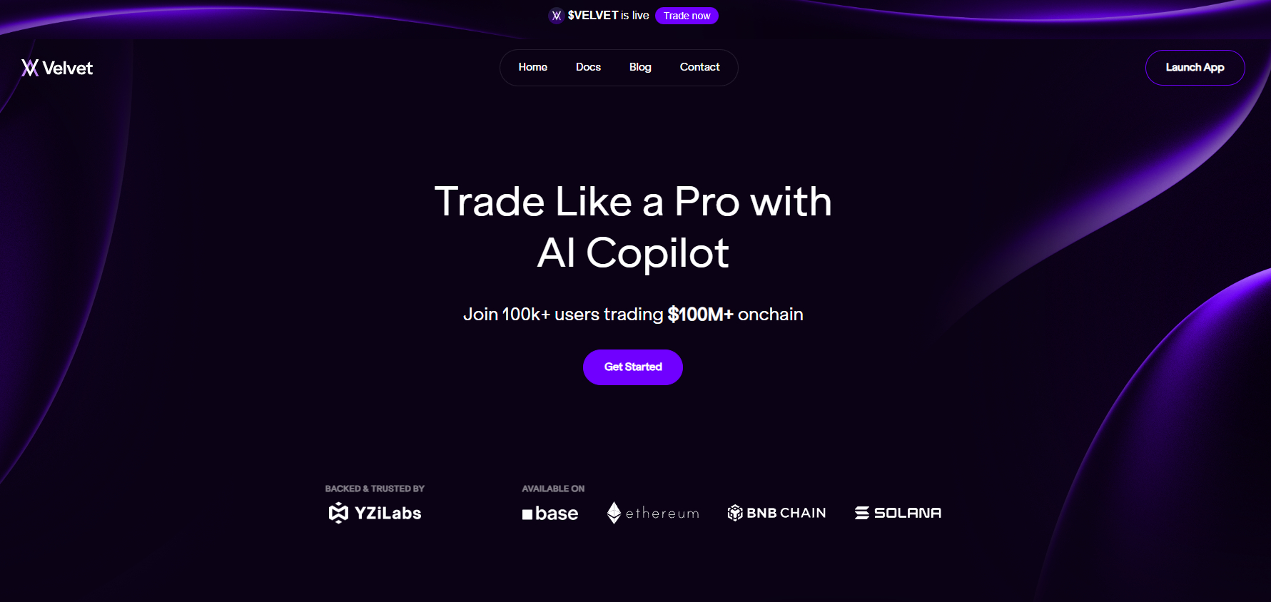 Velvet Capital giải quyết vấn đề phân mảnh trong DeFi bằng cách cho phép tạo và quản lý Vault Tokenized, giao dịch On-chain và phân tích AI, mà không cần Custody tài sản người dùng. Velvet Capital đã đạt 100.000 người dùng tính đến tháng 5 năm 2025, với hoạt động trên các Chain như Base, Solana, BNB Chain, Sonic, Bitlayer và Ethereum.